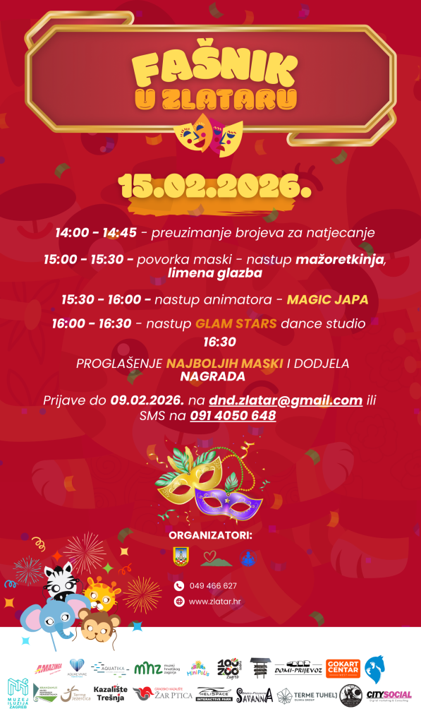 Prijave za sudjelovanje zaprimaju se do ponedjeljka, 9. veljače 2026. putem e-maila dnd.zlatar@gmail.com ili SMS porukom na broj 091 4050 648.